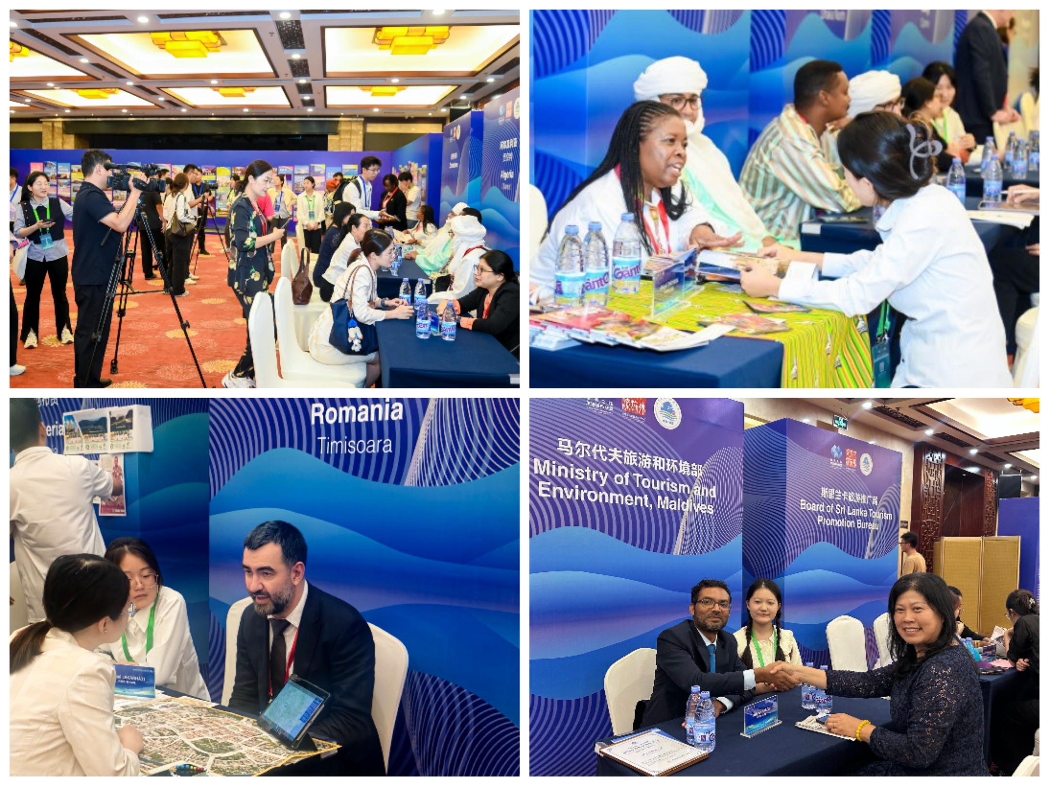 “魅力丝路 联通世界——丝绸之路旅游城市联盟主题展”在活动中同步亮相。展览以图片方式生动呈现亚洲、欧洲、非洲、美洲等联盟会员城市独特的文旅魅力。国际旅行商洽谈现场气氛开放热烈。各方围绕旅游线路共研、客源互送、特色产品共创等议题展开交流,为后续深度合作奠定了基础。