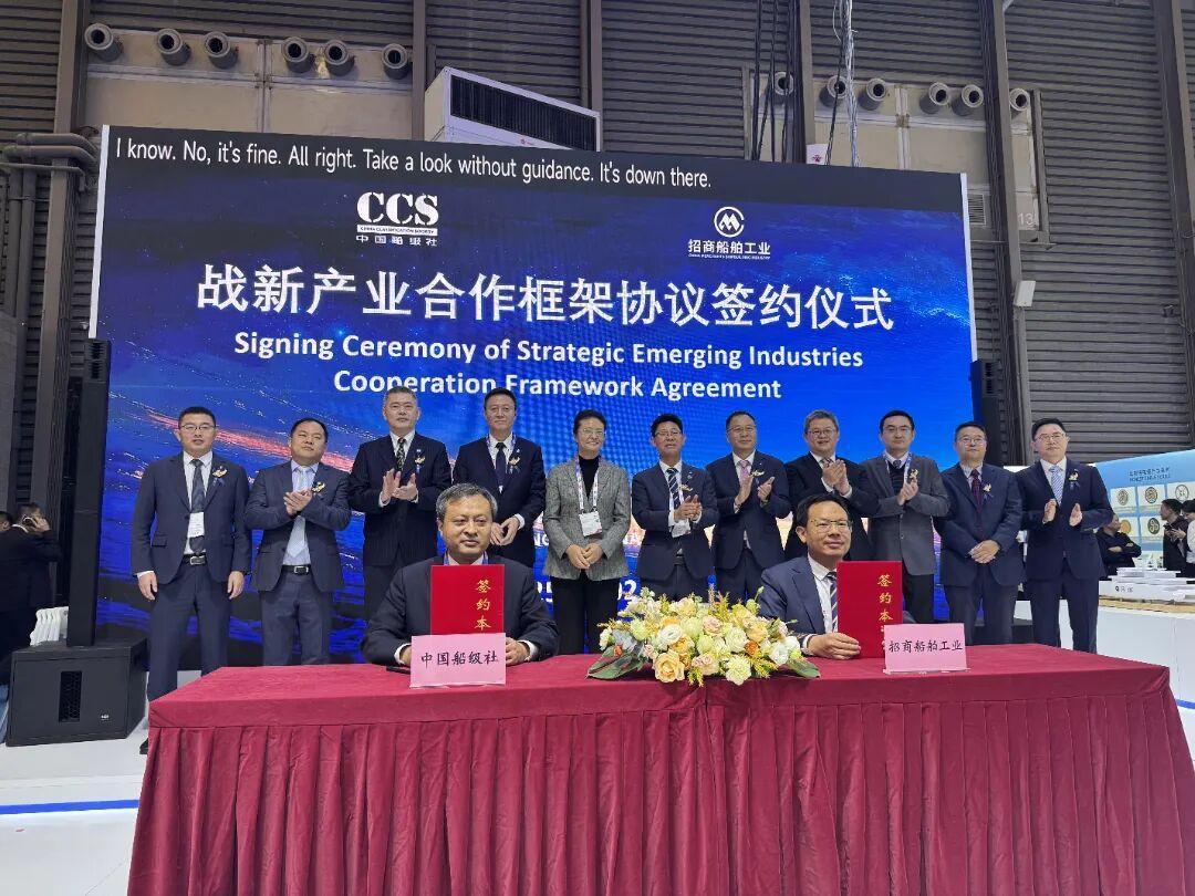 CCS与招商局船舶工业集团有限公司签署了战新产业合作框架协议。在南通市政府副市长李玲、招商船舶工业董事长吴四川、赵晏总裁等领导的见证下,由招商船舶工业总经理梅先志和张庆文副总裁分别代表双方签署了协议。