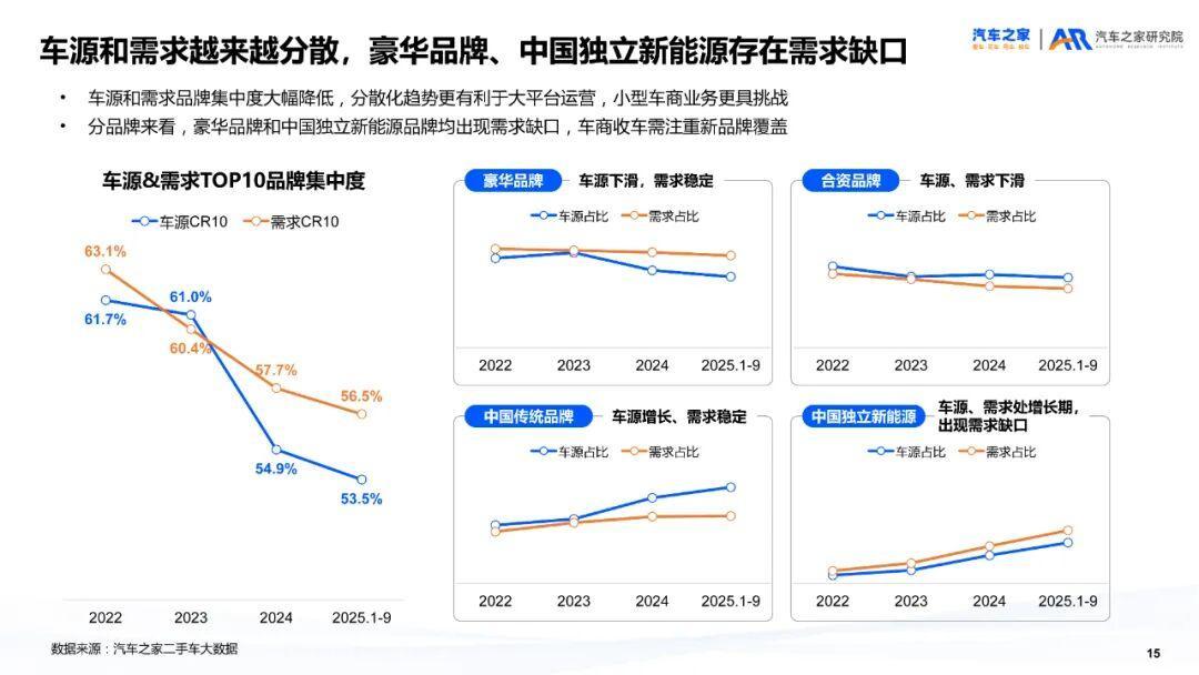- 无论是车源还是需求,TOP10品牌的集中度都出现大幅降低。