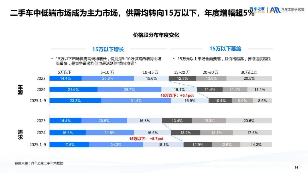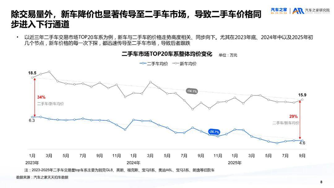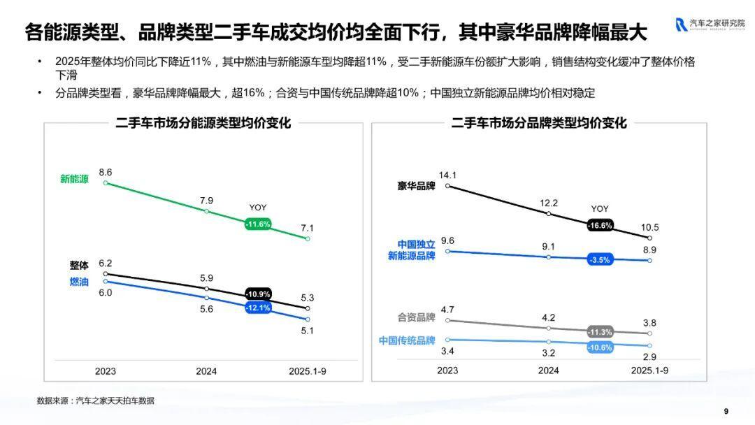 汽车之家研究院依托汽车之家二手车及天天拍车大数据,持续关注二手车市场趋势,形成《二手车市场趋势洞察(2025)》报告,探讨新车市场对二手车的价格传导与联动影响,聚焦需求端与车源端的供需趋势变化,旨在为车商发展提供支撑性建议,共同推动中国汽车流通体系高质量发展。