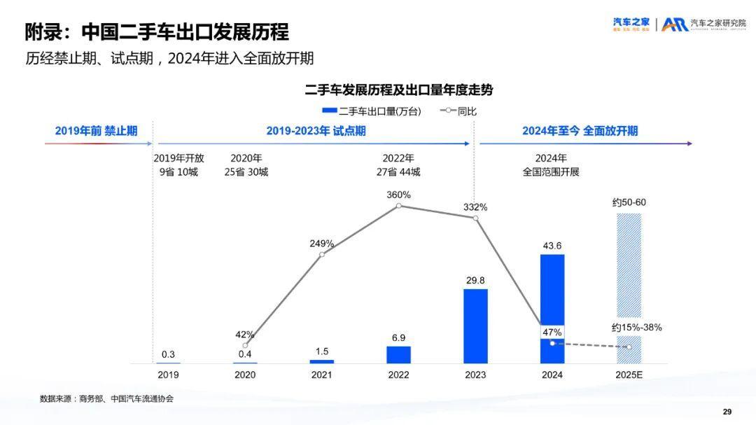 ●海外市场拓展。多种方式实现二手车“出海”。有海外资源的企业可积极开展海外市场布局,或者与专业出口商合作,切入全球二手车贸易链条,为海外市场供应丰富车源。