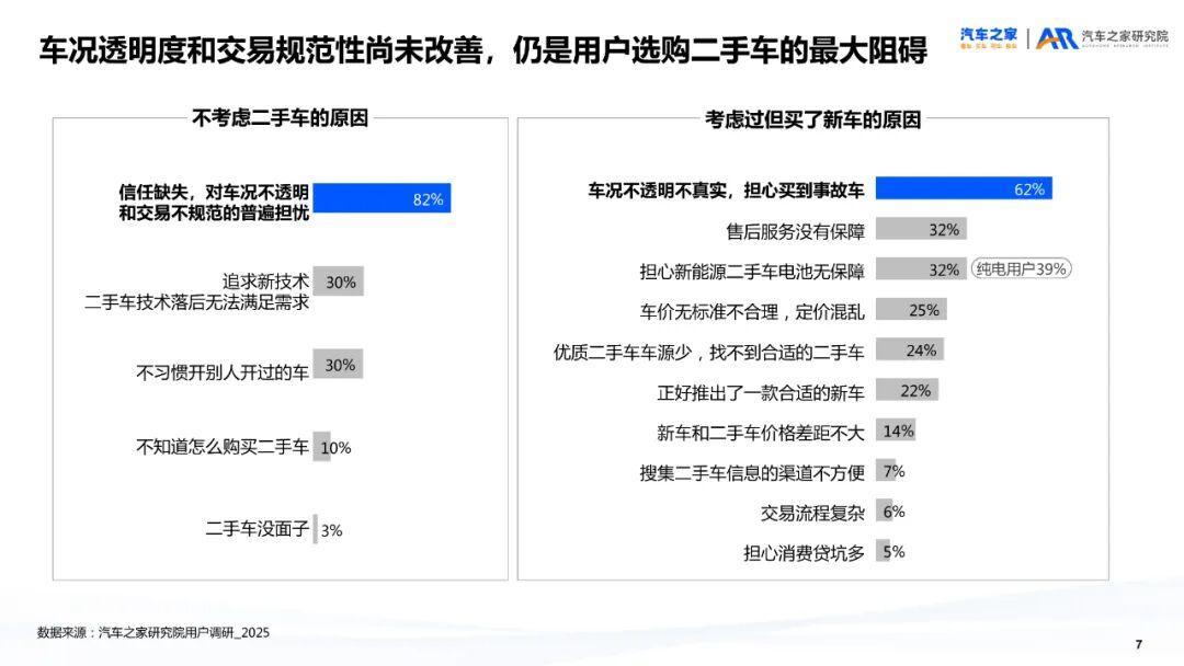 ●除新车影响外,用户对车况不透明和交易不规范的担忧持续存在,也是限制二手车发展的一大原因。