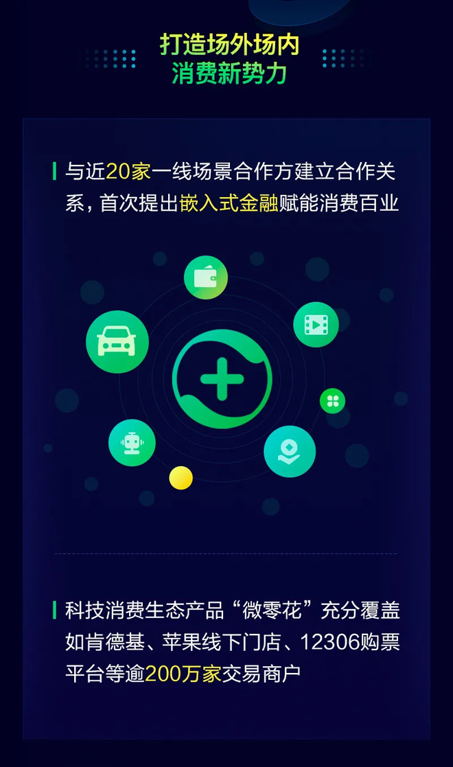 三季度,360数科积极布局的科技消费生态产品“微零花”也取得了突出的成绩,充分覆盖如肯德基、苹果线下门店、12306购票平台等逾200万家交易商户,满足用户多样的资金需求。