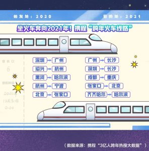 很多人选择坐火车直达2021年。数据显示,元旦火车出行高峰将从12月30日开始。广州、长沙、杭州、哈尔滨、重庆、北京等6大交通枢纽,元旦热度高涨。