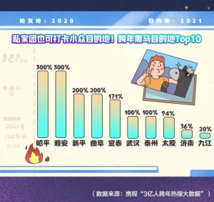挥别魔幻的2020年,跨年旅行尤其看重“仪式感”。数据显示,2021年元旦,国内深度游目的地热度上涨320%。重庆解放碑钟声倒计时跨年、珠海长隆烟花跨年、乘西沙邮轮海上跨年、在海拔3000米的西藏徒步跨年、在“中国东极”抚远打卡“2021第一缕晨光”、在零下50℃的敖鲁古雅使鹿部落泼水成冰,都成网红玩法。很多人翻山越海,在旅途中迎接2021年。