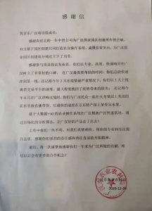 12月16日,京东数科收到了一封来自广汉市农业农村局的感谢信。