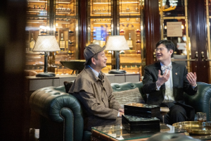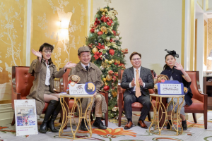金沙中国有限公司首席营运总裁郑君诺(右一)在澳门伦敦人酒店英式专属会所华庭讲解英式下午茶文化