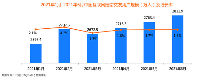 10月11日,第三方数据调研机构比达咨询发布了《2021上半年度中国互联网婚恋交友市场研究报告》(下称《报告》)。《报告》从发展现状、市场分析、用户洞察及发展趋势等方面,分析了中国互联网婚恋交友市场的发展现状及未来趋势。