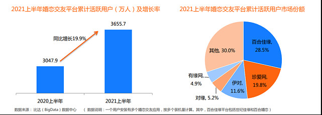 2021上半年:百合佳缘月均活跃用户达687.5万人,占据31.2%装机量市场份额