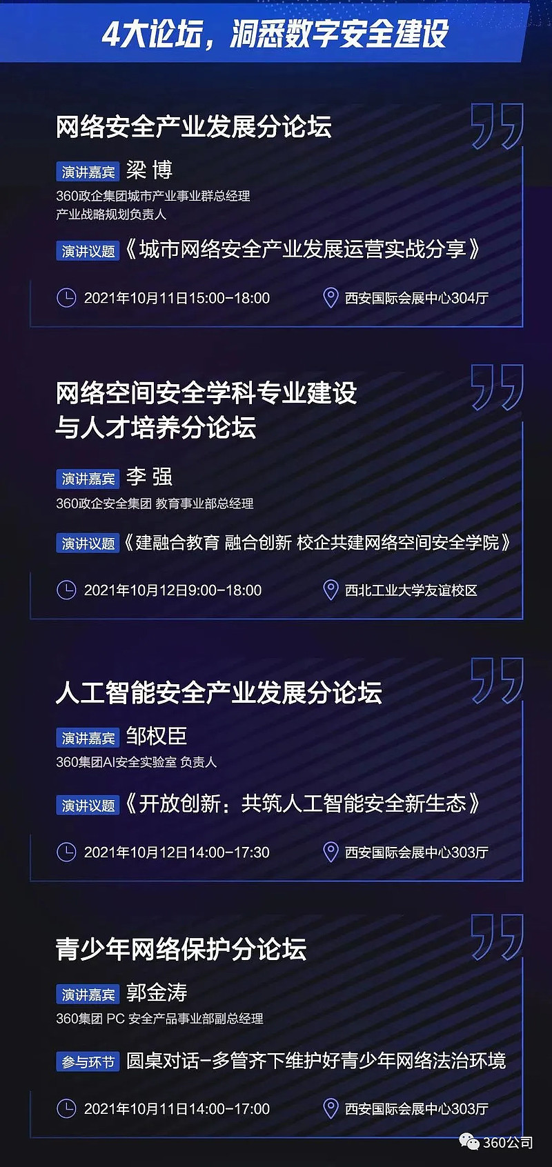 据悉,2021年网安周由中宣部、中央网信办、教育部、工信部、公安部等部门联合举办,首次以线上线下联动举办的网络安全博览会,共70余家单位、企业参展。作为网安龙头,360公司不仅在博览会上展示了以新一代安全能力框架为代表的网安硬科技,还通过派出专家分享、参与节目科普、举办安全赛事等多种活动,在全国各地带动了众多网民积极参与网安周的热情,生动诠释了“网络安全为人民、网络安全靠人民”的主题。