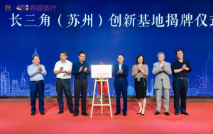在商创院院长、复旦大学管理学院院长陆雄文、江苏省商业联合会会长潘宪生、横店集团副总裁徐天福等嘉宾的共同见证下,商创院秘书长兼常务副院长蒋斌与同程集团联合创始人、同程艺龙CEO马和平共同为长三角(苏州)创新基地揭牌。这是商创院 “长三角创新基地”项目的首个城市创新基地,也是商创院迈出商业创新研究和实践,加快整合长三角相关创新资源又一探索。基地坐落于苏州市工业园区同程旅行大厦十楼,占地约2500平方米,由商创院、同程旅行共建的苏州同创文化科技有限公司负责运营。
