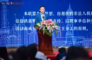 (图为长三角文旅发展联盟执行秘书长、同程艺龙副总裁王凯发布《长三角文旅发展联盟筹备报告》)