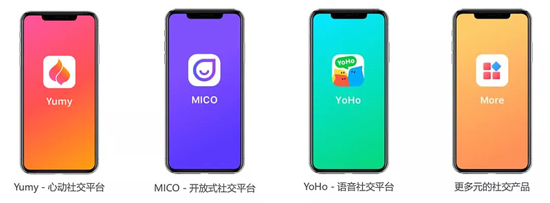 中国最大的社交出海公司赤子城科技亦采取了多元细分产品策略,公司发力音视频社交赛道,着眼“社交+视频”、“社交+直播”、“社交+语音、“社交+游戏”等细分场景,差异化打造多元化社交产品矩阵,推出了Yumy、MICO、YoHo等产品,风靡中东、北美、东南亚、南亚等地区。