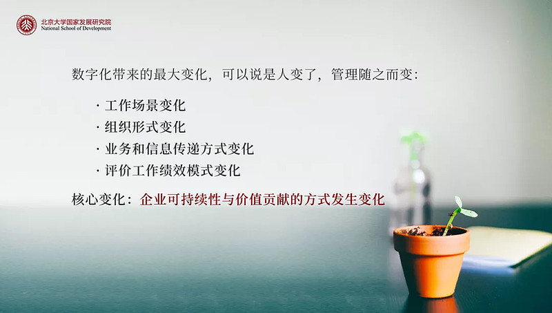 今天,无论从工作场景、组织形式、业务与信息传递的方式,人与人的沟通方式、评价工作绩效的模式,这些都发生了根本的改变。当这些东西改变的时候,我们所关注的核心话题就是企业的可持续性和价值贡献的方式其实发生了变化。
