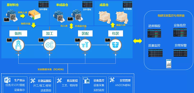 通过加工工艺、加工程序、物料的条码化/RFID管控,实现了加工过程的防呆防错。通过任务看板、ESOP、图纸可视化、设备状态提示,实现生产过程的可视化管理;通过在制品的开工、报工、转移和进度跟踪实现了对生产进度的管控。