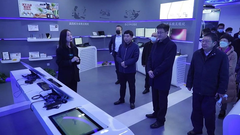 2月23日上午,福州市副市长黄建雄、福州市工信局二级调研员谢竞红、福州市商务局二级调研员严周文等一行参观调研汉王科技。汉王科技总裁朱德永、董事刘秋童、副总裁黄磊、王坤、党政事务部主任钱唐霞等接待陪同。